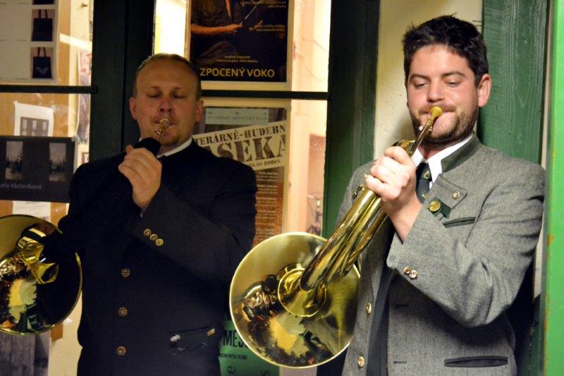 Úterní vernisáž výstavy v klubu Les s názvem „Les s ní“ začala stylově vystoupením mysliveckých trubačů. Hornisté v lese, to je mezi nimrody běžný obrázek, každé myslivecké sdružení totiž dbá na tradice a zvuk lesního rohu je při zahájení lovu povinností. Hornisté v absintovém klubu, to byl ale výjimečný jev.
