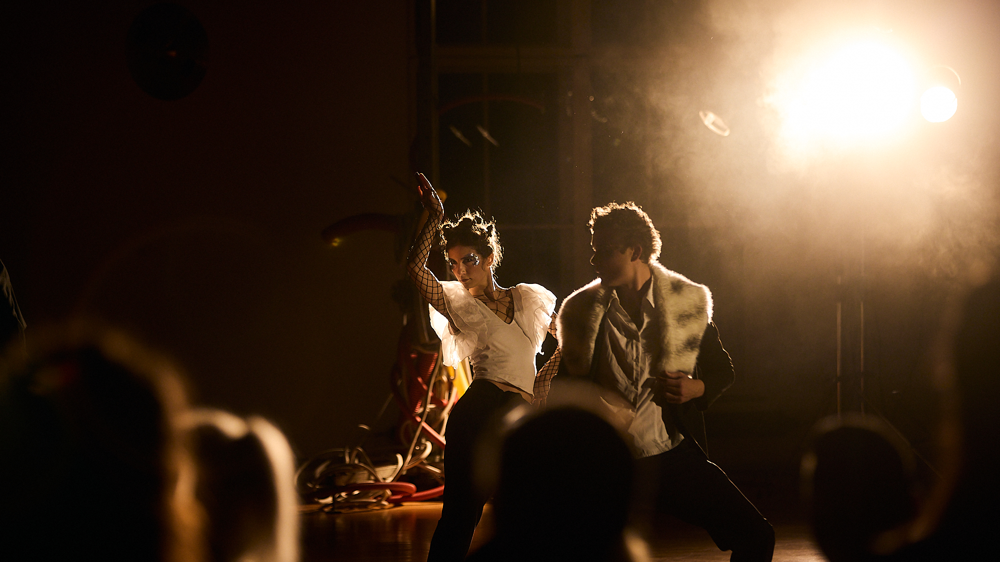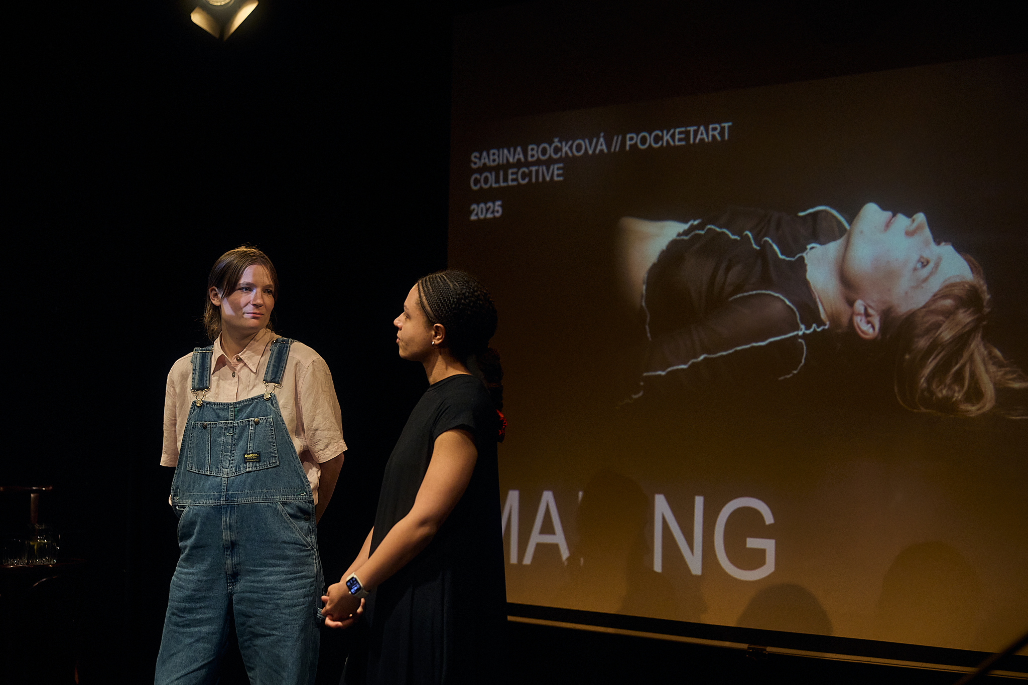 Trio Takže tak… připomínalo rituální tanec nebo zaříkávání bosorek, především díky společným kruhovým pohybům a vazby na holé peřiny bez povlaku, které pro každou fungovaly jako útočiště a bezpečný prostor. Odpoledne uzavřely studentky z Banskej Bystrice s choreografií vytvořenou jejich pedagogy (a zároveň stále aktivními performery) Lucíí Bielik a Radoslavom Piovarčim. Sei La Mia Donna spojovalo absurditu a humor s pozorností na fyzicky náročné zvedačky a partneřinu, které se objevovaly v hojném množství. Deset studentek s velkou pozorností a vědomím omezeného prostoru manipulovaly ve dvojicích se svými těly, přenášely na sebe váhu nebo skákaly.