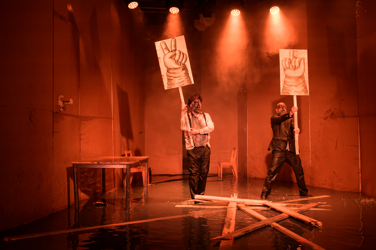 Maxim Isajev a Pavel Semčenko hrají sice místy v pracovních rukavicích, ale jinak svoji performativní kreaci vedou na samé hranici sebepoškození, například když hrají vleže ve vodě. Vědí, že skutečnou a opravdovou touhu po svobodě a pravdě je nutné vyjádřit jen plně pravdivým projevem.