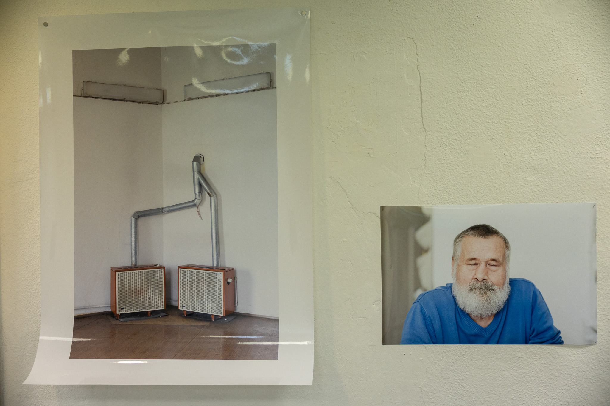 Nakonec se ale mé pozorování zastavilo, proměnilo se v hledání a především nalézání. Do celku byly vybrány figurální náměty, které autor střídá s fotografiemi předmětností a architektury. Vzniká tak specifická vizuální ekologie. Portrét umělce Václava Stratila je nablízko konfrontován s motivem dvou otopných těles, ústících do jednoho komína. Tohle instalační kloubení ve mě vyvolává silné pnutí. Stratil nikdy nebyl autorem přímočarých východisek a jednoho komínového efektu. Jeho umělecké uvažování vždy vycházelo a stále vychází z mohutné otopné soustavy, kde je opravdu horko a složitým, možná lépe řečeno krkolomným způsobem se spaliny jeho invence dostávají ven. Kontemplativní rozpoložení Stratila na fotografii nás přenáší do jeho vnitřního světa, který nikdy nebude poháněn jedním tepelným zdrojem. Zároveň je zde lehkou formou dimenzována subverze se Stratilem navždy spojená.