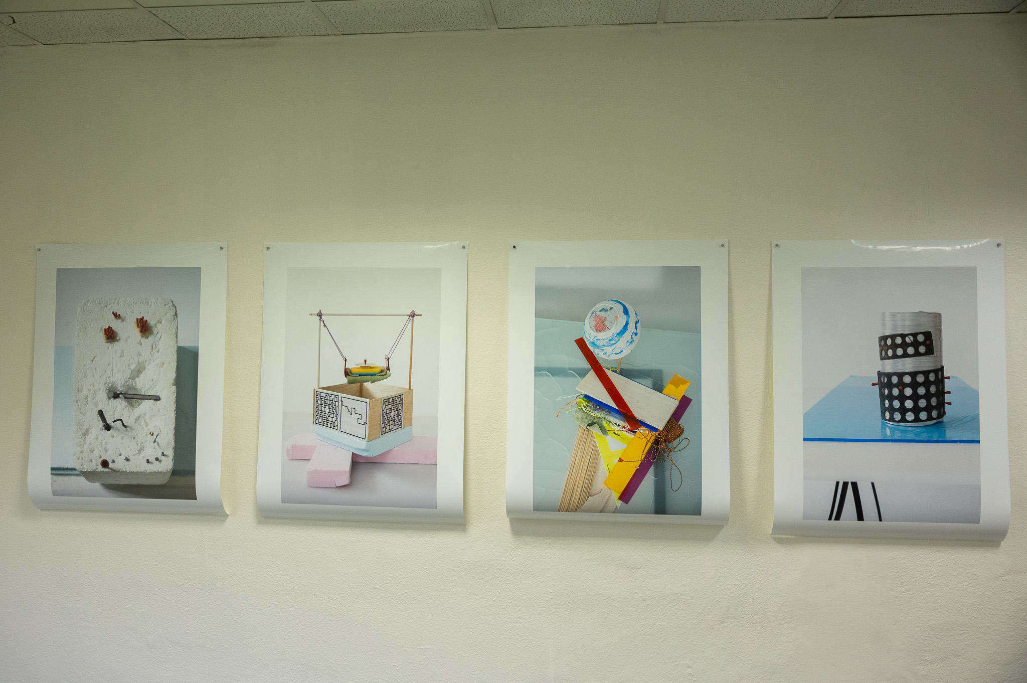 Vedlejší zeď je zaplněna sérií fotografií barevných asambláží. Tyto struktury čtu dvojím pohledem. První je dokumentační, respektive procesuální. Díváme se na výslednici lidského úsilí o redefinici forem a jejich souvztažnosti, na trashové modelovaní, hledání novotvarů, utváření druhé přírody. Je to z principu dadaistický, více než sto let starý koncept, který se dle všeho udržuje stále naživu. Druhý pohled je již ryze fotografický, kdy Souček aplikuje matrici produktové fotografie vztaženou na tyto asambláže. Z bezobsažnosti se stává estetická matérie, která bez ohledu na své okolí pluje prostorem. Navozuje libé až libidinózní pocity, především díky barevným kombinacím, ale také skrze měkkost a křehkost předlohových konstrukcí.
