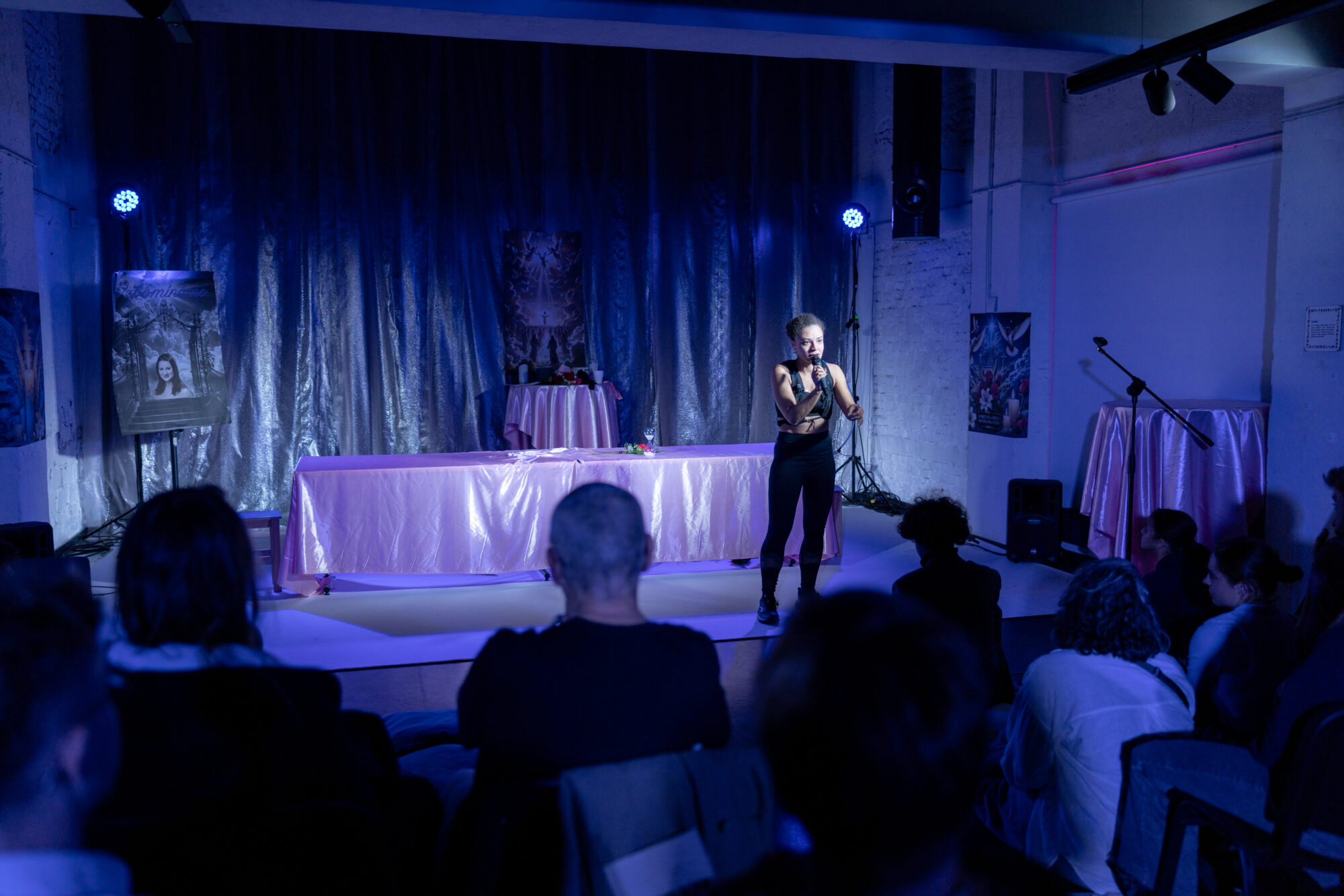 Vážení pozůstalí. Autor Tereza Agelová. Režie Eliška Houserová. Dramaturgie Klára Pavlištíková. Scéna Vendula Klímová. Hudba Tomáš Mohr. Recenze je psaná z premiéry uvedené Spolkem Jednou v galerii Futureum v Ostravě v pátek 31. října 2025.