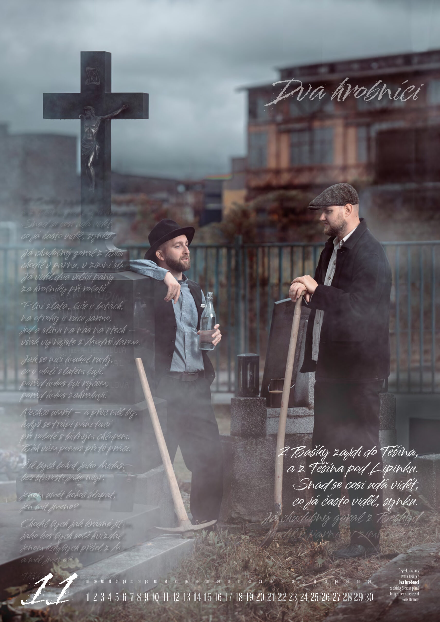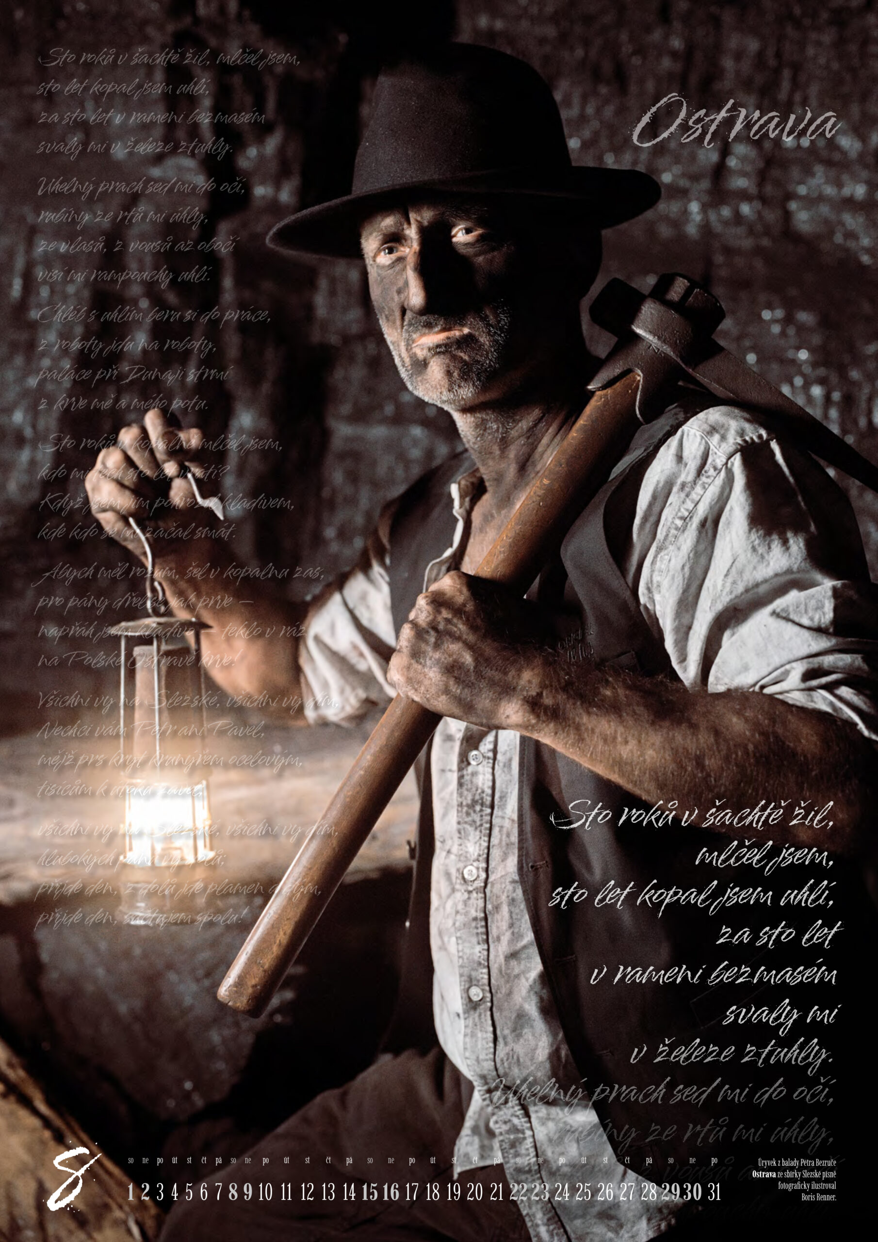 Svůj první charitativní kalendář vydal Boris Renner v roce 2018 ke stému výročí vzniku republiky. Příběhy staré Ostravy tehdy vzbudily obrovský ohlas a otevřely úspěšný cyklus, ve kterém každý rok vznikají nevšední kolekce dvanácti inscenovaných fotografií. Fotograf v retrokalendářích navodil třeba atmosféru první republiky nebo normalizačního bezčasí, zvláštní pozornost věnuje minulosti svého města a regionu. Pro rok 2026 se inspiroval Slezskými písněmi Petra Bezruče – tedy sbírkou, která mu svou drsnou krásou učarovala už na základní škole.