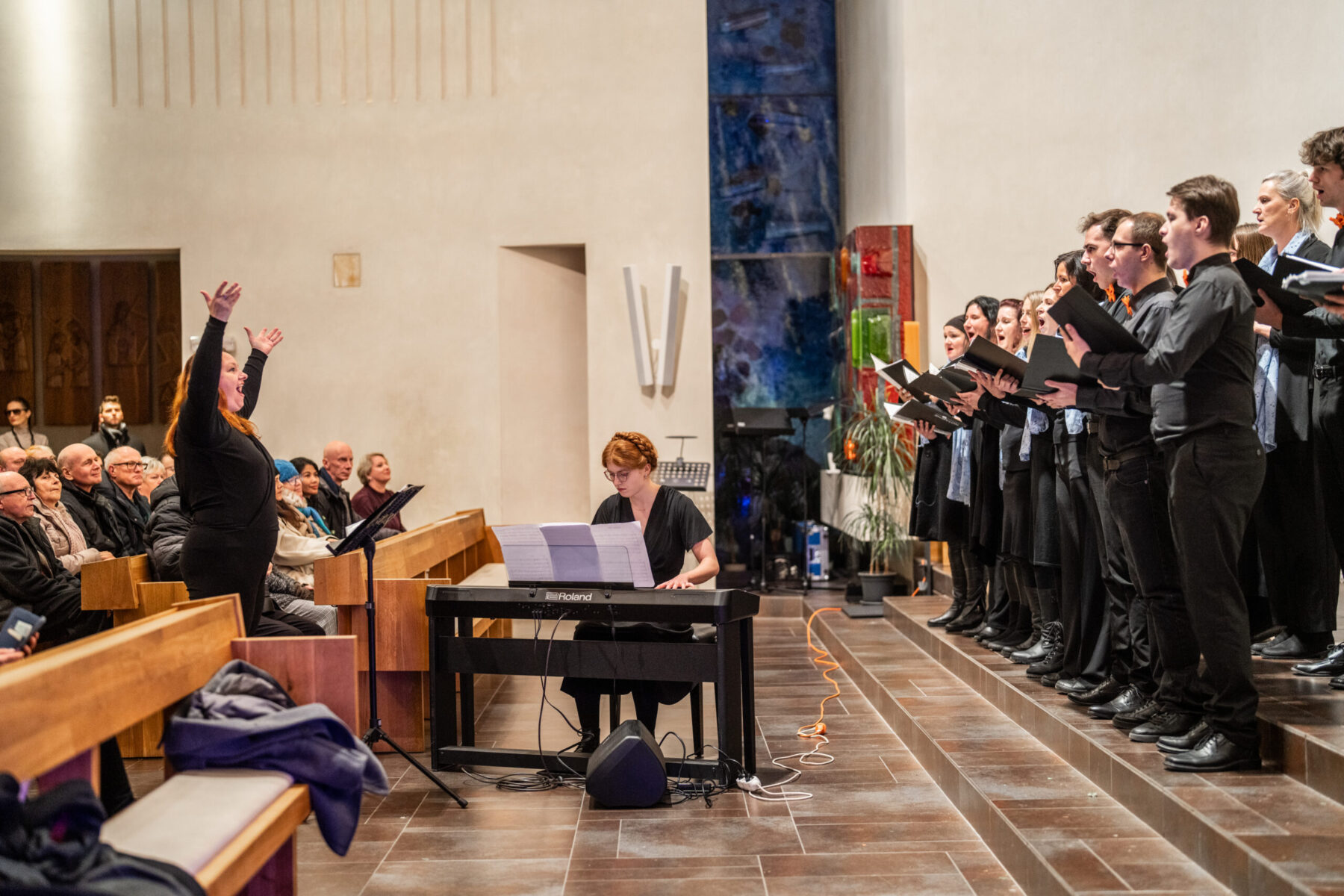 O první programový bod se postaral ostravský pěvecký sbor Notabene pod vedením sbormistryně Daniely Střílkové. V jeho podání zazněly stručnější, ale velmi živé a důvtipně napsané skladby Markéty Dvořákové, Daniela Poledňáka, Vojtěcha Terkoviče a Markéty Kapustové. Mezigenerační profil nebyl vůbec na škodu, neboť se ukázalo, že studenti z řad skladatelů mají cit pro ztvárnění duchovních textů a zkušenější autoři jako Markéta Dvořáková neztrácejí smysl pro hravost a bystré posouvání hranic. Svědčí o tom rytmické finesy pomocí dlaní i perkusí, ale i půvabně hravé frázování latinských textů, které Notabene přednesl s intonační jistotou a srozumitelnou dikcí. Podobně zdařilý výkon představil také mužský pěvecký sbor KoMPAS a nesmíme zapomenout ani na kultivovaný doprovod mladičké klavíristky Markéty Kotulanové.