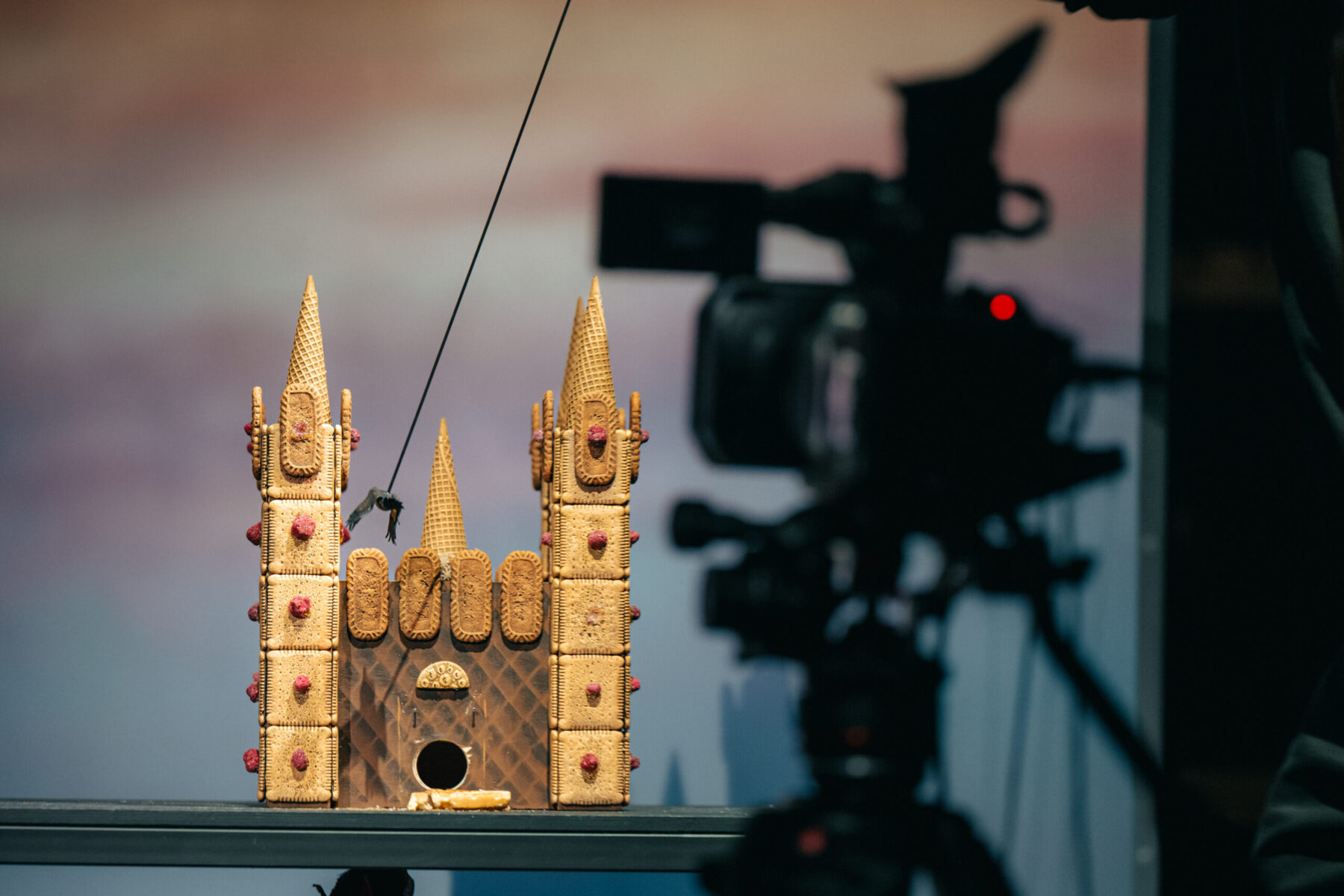 Není pochyb, že tvůrci si dali na celém tvůrčím procesu záležet. Na jevišti se místo klasických kulis setkají diváci s potemnělou scénou, která poskytuje zázemí pro několik stanovišť. Dřevěná vesnička na točně, domeček babičky, Gerdy a Kaje, čarovná zahrada, finský saunový sud, sušenkový hrad či samotné sídlo Sněhové královny. Všechna místa zabírají mobilní a statické kamery. Ačkoli jsou jednotlivé příběhové linky přizpůsobené tak, aby vyhovovaly loutkovému provedení, samotnému vyprávění to až tak nevadí.