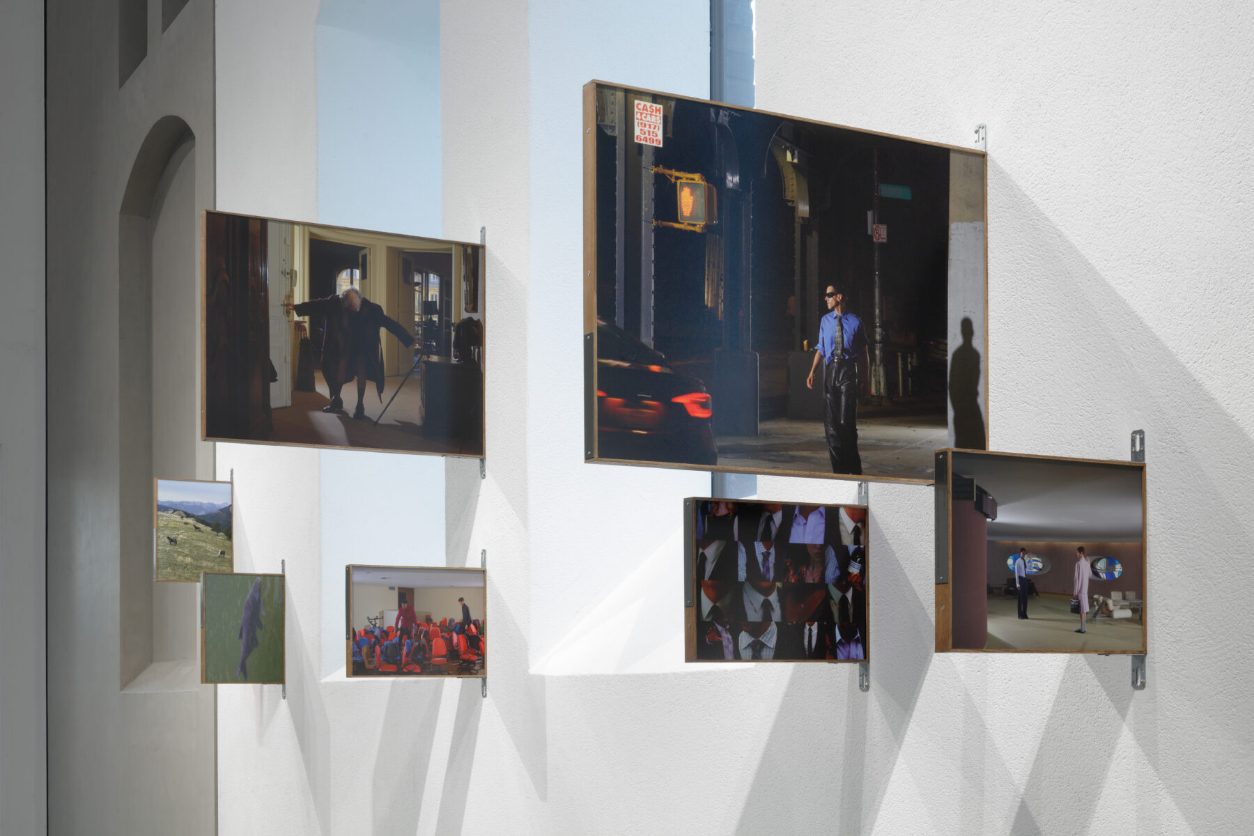 Umělec využil dva výstavní sály, které jsou navzájem oddělené stěnou a prosklenými dveřmi, k vlastní autorské instalaci. Je jednoduchá a sofistikovaná zároveň. Gró výstavy tvoří aranžované fotografie, adjustované z obou stran na silné desky, zabořené svou boční stranou kolmo do obvodové zdi výstavního sálu. Divák tudíž na ně nehledí čelně, ale je nucen obcházet je a pozorovat z bezprostřední blízkosti, stoje při tom bokem ke stěně. Když se otočí o 180 stupňů, má před sebou další fotografii umístěnou kolmo ke zdi, kterou když obejde, najde na reverzní straně desky její pokračování … a tak dále. Možná jen zmíněné dveře mezi oběma sály jsou překážkou pro hladké a ničím nepřerušované plynutí fotopříběhu.