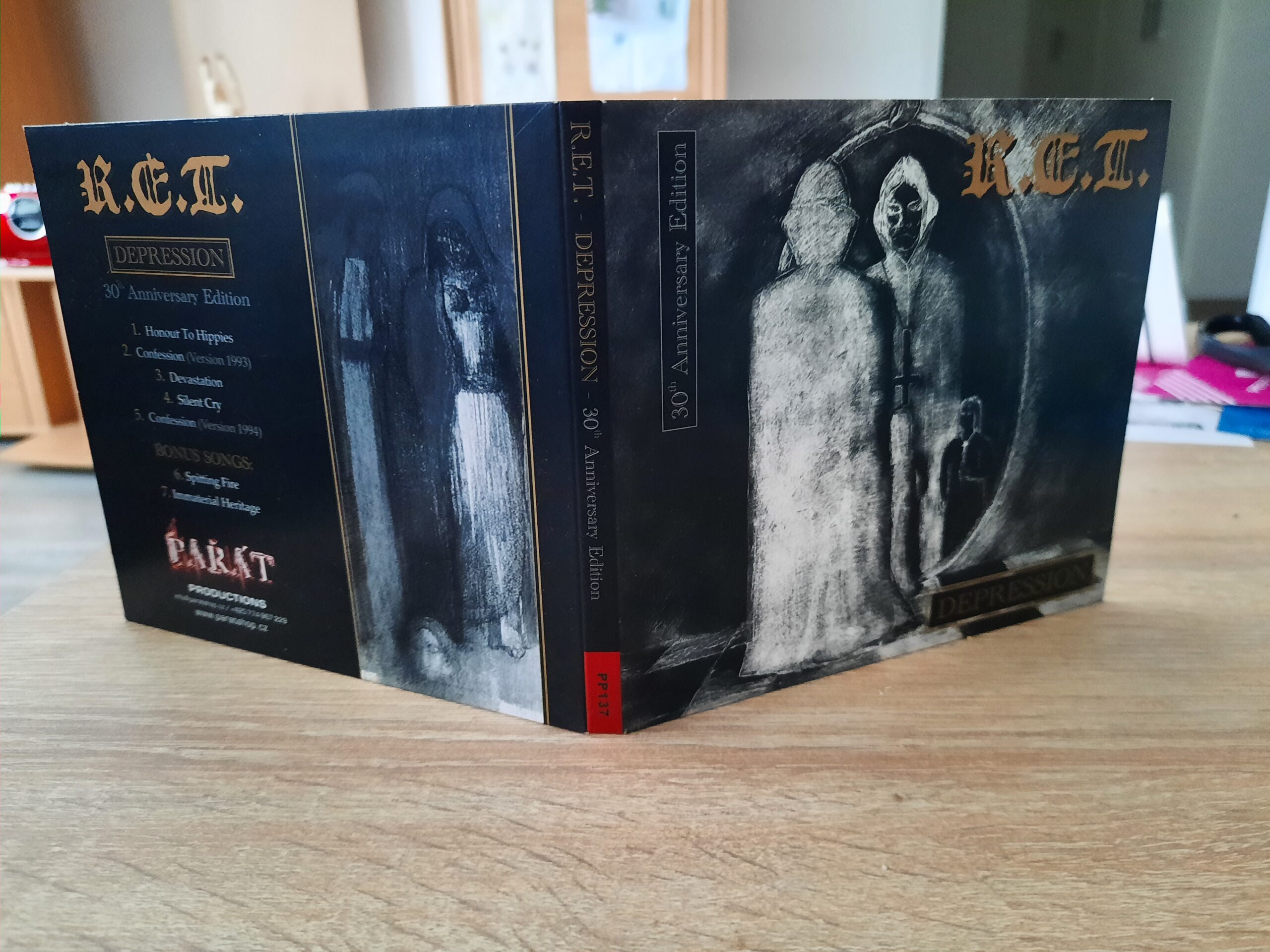 Po třiceti letech od CD vydání nahrávky Depression od R.E.T. vypustil Pařát Productions do metalového světa její reedici. Původně tato čtyřpísňová kolekce, která byla natočena v roce 1993, vyšla jako kazetové demo. Loňský počin však obsahuje dva zcela nové bonusové songy a ve dvou verzích také píseň Confession, jednu z roku 1993 a druhou z roku 1994.