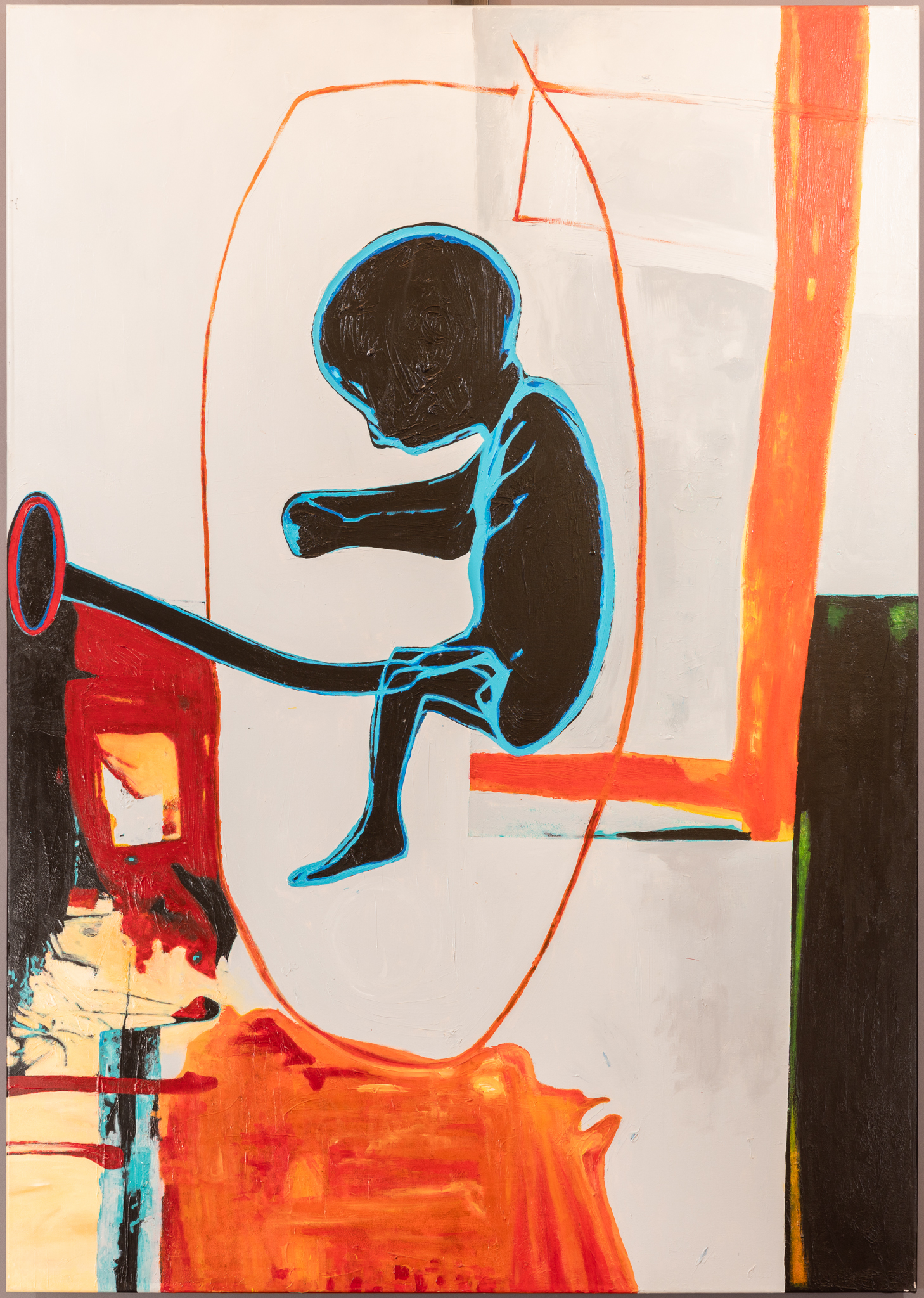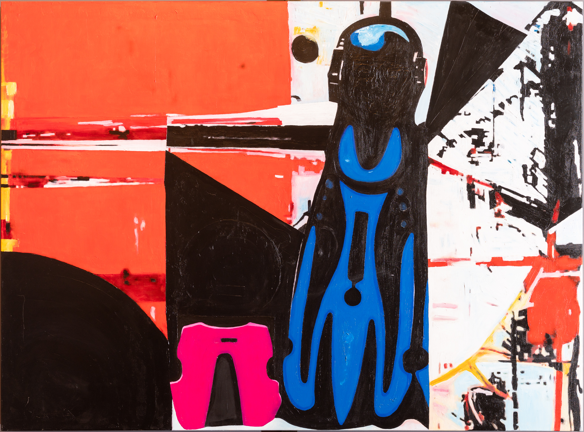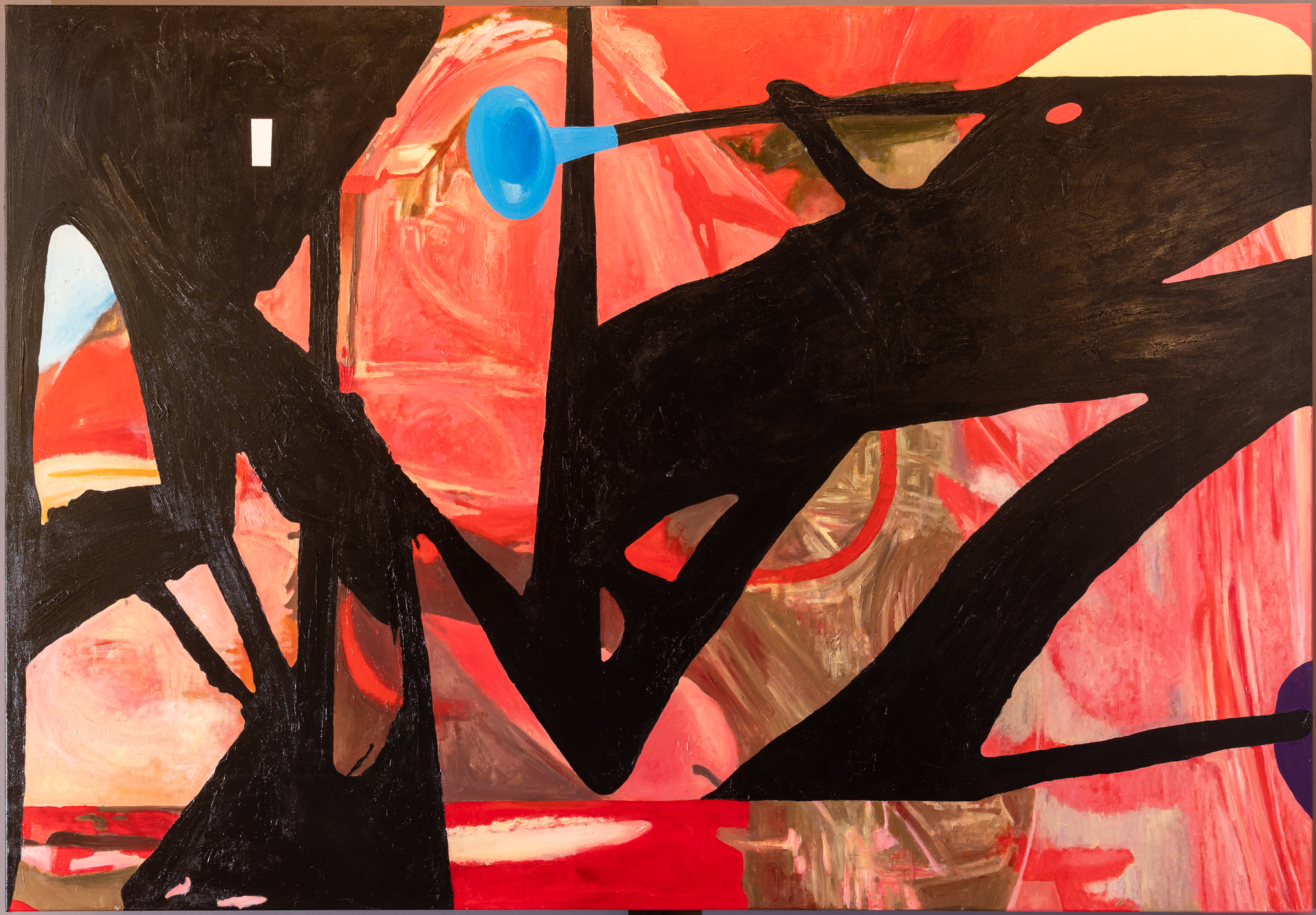 A pokud byste na výstavě nevěděli, kam dřív s očima, a cítili se až závratně polapeni velkoformátovými obrazy Stefana Milkova, vězte, že ten sedmý, poslední, se jmenuje Klaustrofobia.