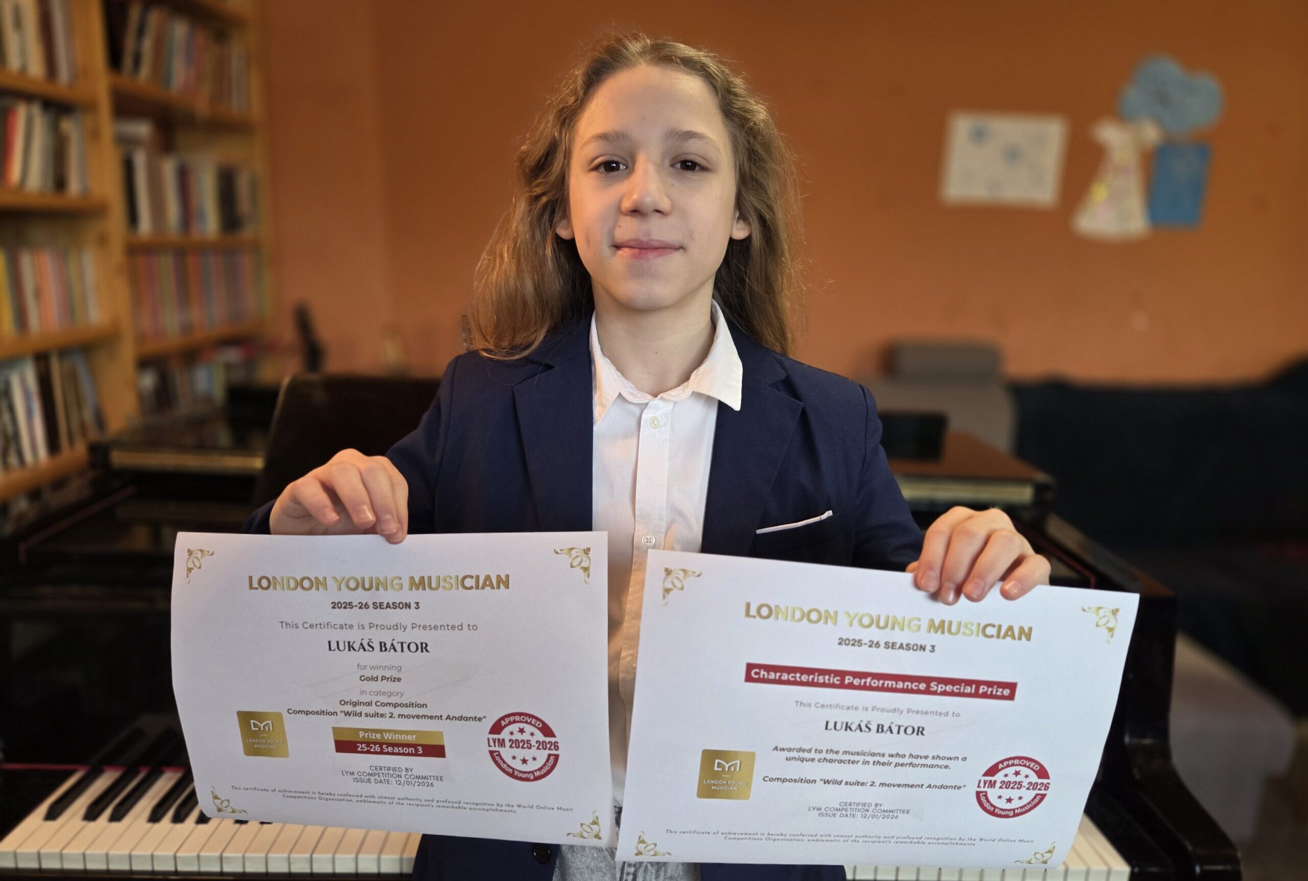 Mladý skladatel a pianista Lukáš Bátor letos zazářil na mezinárodní soutěži London Young Musician. Ve velké konkurenci účastníků z celé Evropy za svou Divokou suitu získal zlatou medaili a navíc speciální cenu za unikátní interpretaci.