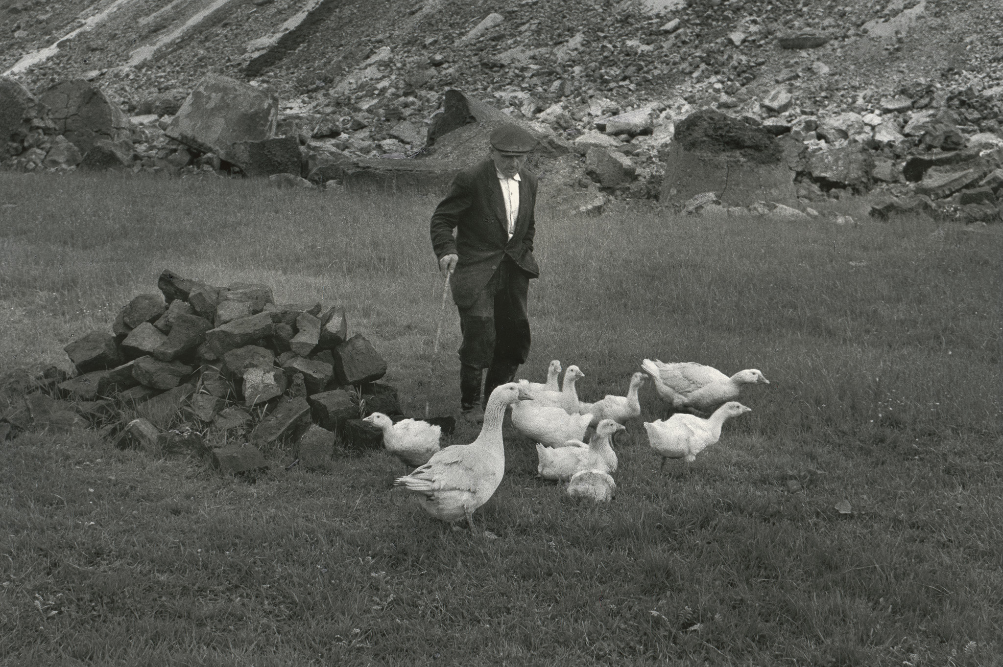 Viktor Kolář: Starý muž z husami ze série Ostrava, 1966