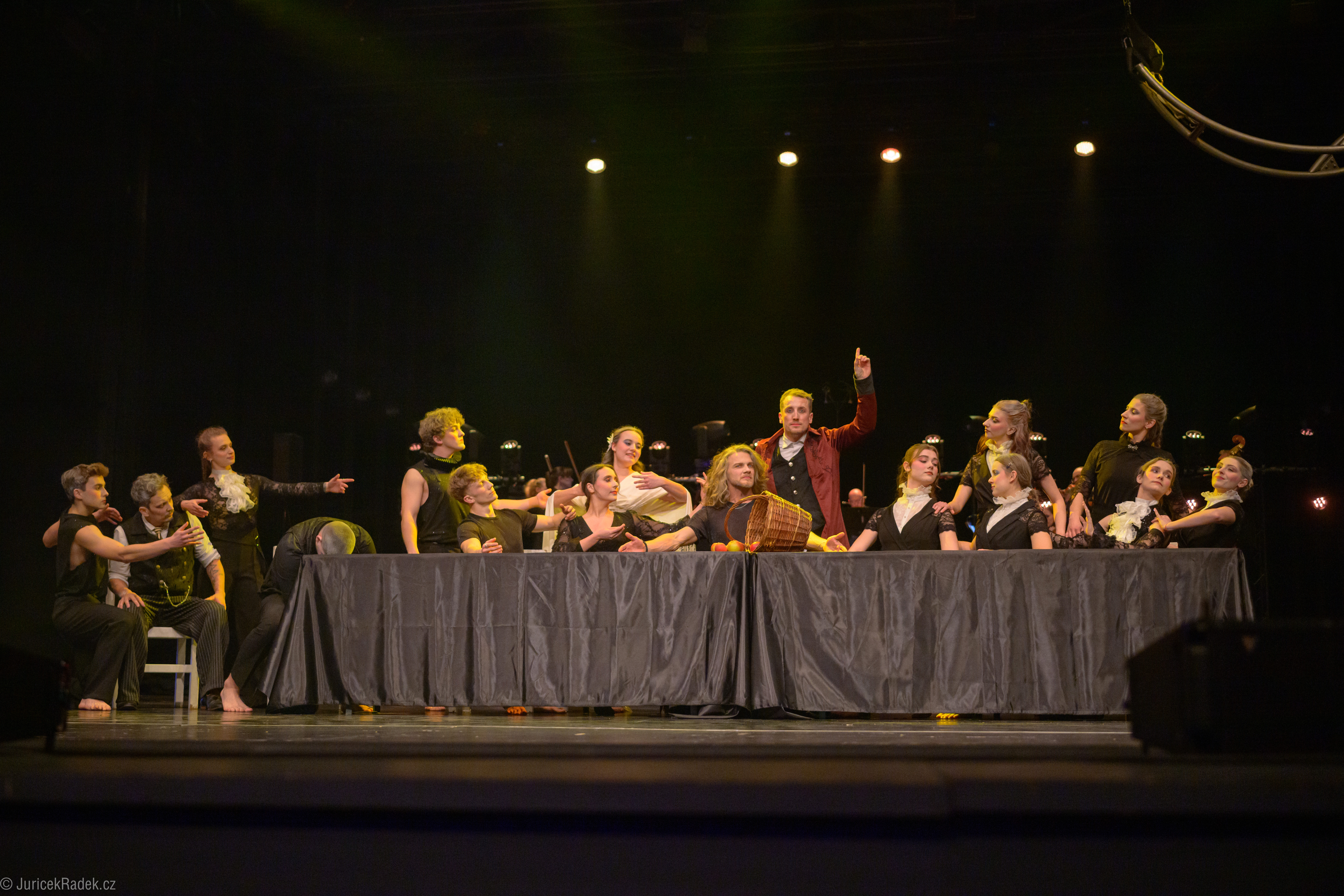 Ačkoli v úvodu působily jednotlivé obrazy poněkud roztříštěně – k čemuž přispívaly především viditelné přesuny náčiní a kulis – ve druhé polovině se situace začaly prolínat mnohem přirozeněji a celek získal výraznější kontinuitu. Drobné etudky a hravé výstupy střídaly efektní a vizuálně dobře zapamatovatelné obrazy jako byla ,,poslední večeře“, výstup akrobatky na závěsné tyči, kolem níž dynamicky obíhala velká skupina tanečníků a artistů, či závěrečná scéna na provazochodeckém laně.