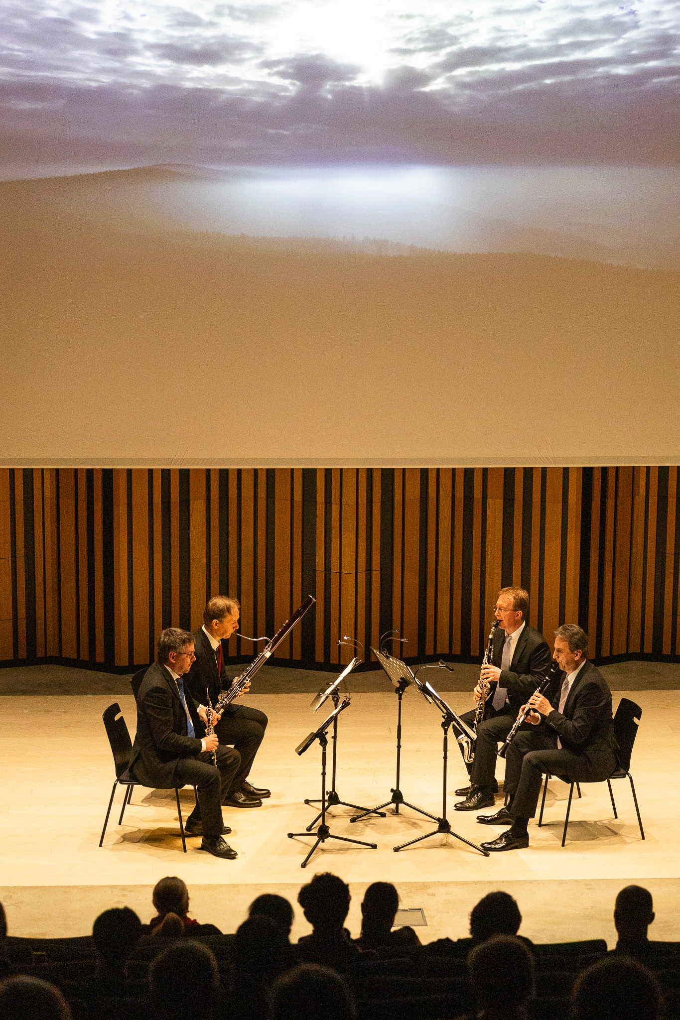 Johan Sebastian Bach v nevšedních úpravách pro dechové kvarteto. Tak znělo zadání koncertu, na kterém zahrál Arundo Quartet. Soubor renomovaných českých interpretů se představil ve dvou skladbách barokního mistra v sále Fakulty umění. Nechyběl ani doprovod v podobě vizuální intervence Imricha Vebera.