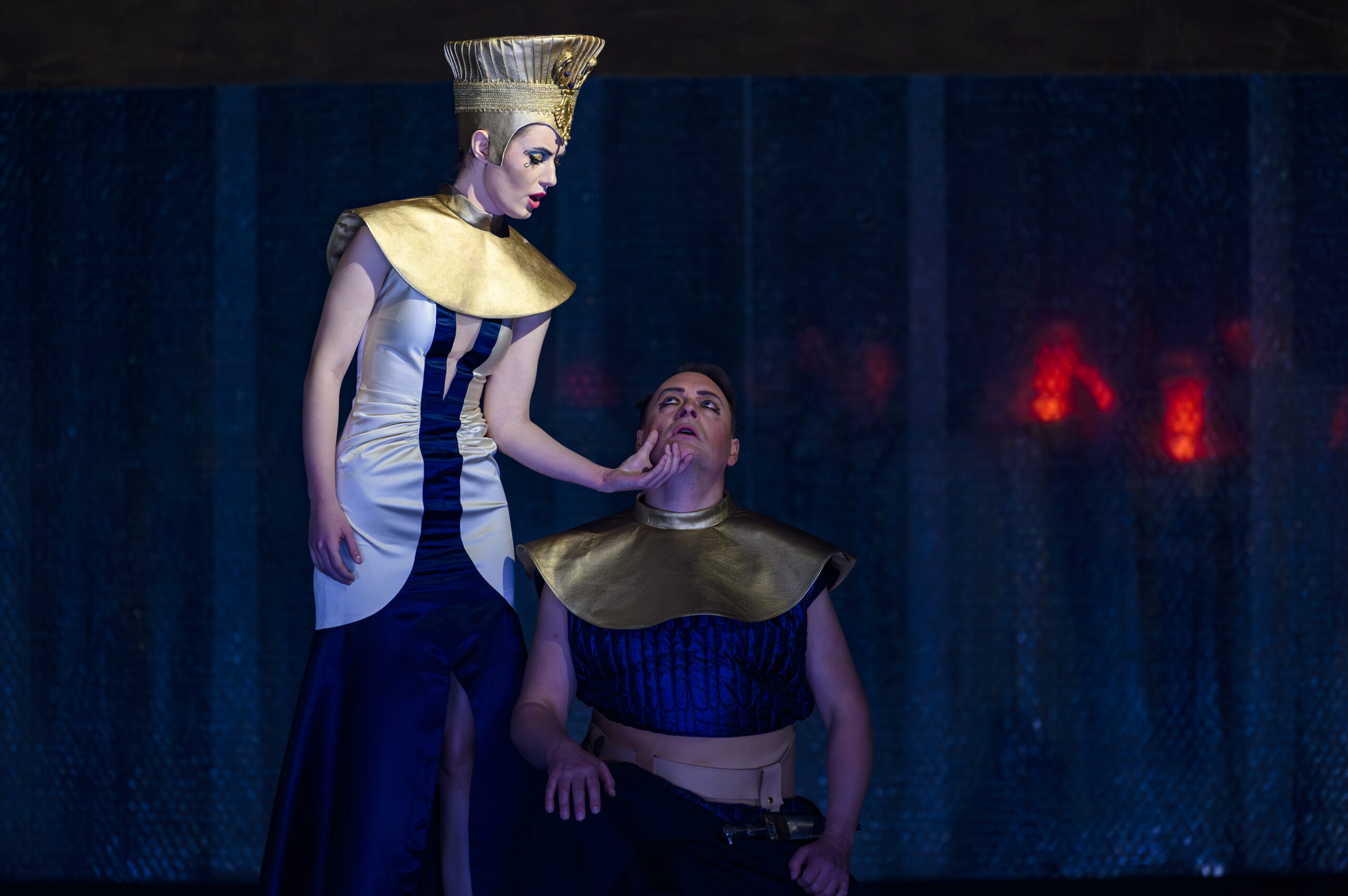 Zjevením premiérového večera byla studentka Fakulty umění Ostravské univerzity Magdaléna Rovenská jako faraonova manželka Sinaida. Její soprán zní plně, s pevnou oporou a jasně definovanou intonací. Náročné koloratury zvládala s technickou suverenitou, ale co bylo podstatnější – každá fráze měla význam. Vznešenost, jistota, dramatická energie – a přitom technická samozřejmost. Sinaida v jejím podání nebyla jen dekorativní královnou, ale dramatickou silou. Její přirozená jevištní autorita a hlasová jistota ji řadí k výrazným osobnostem mladé generace.