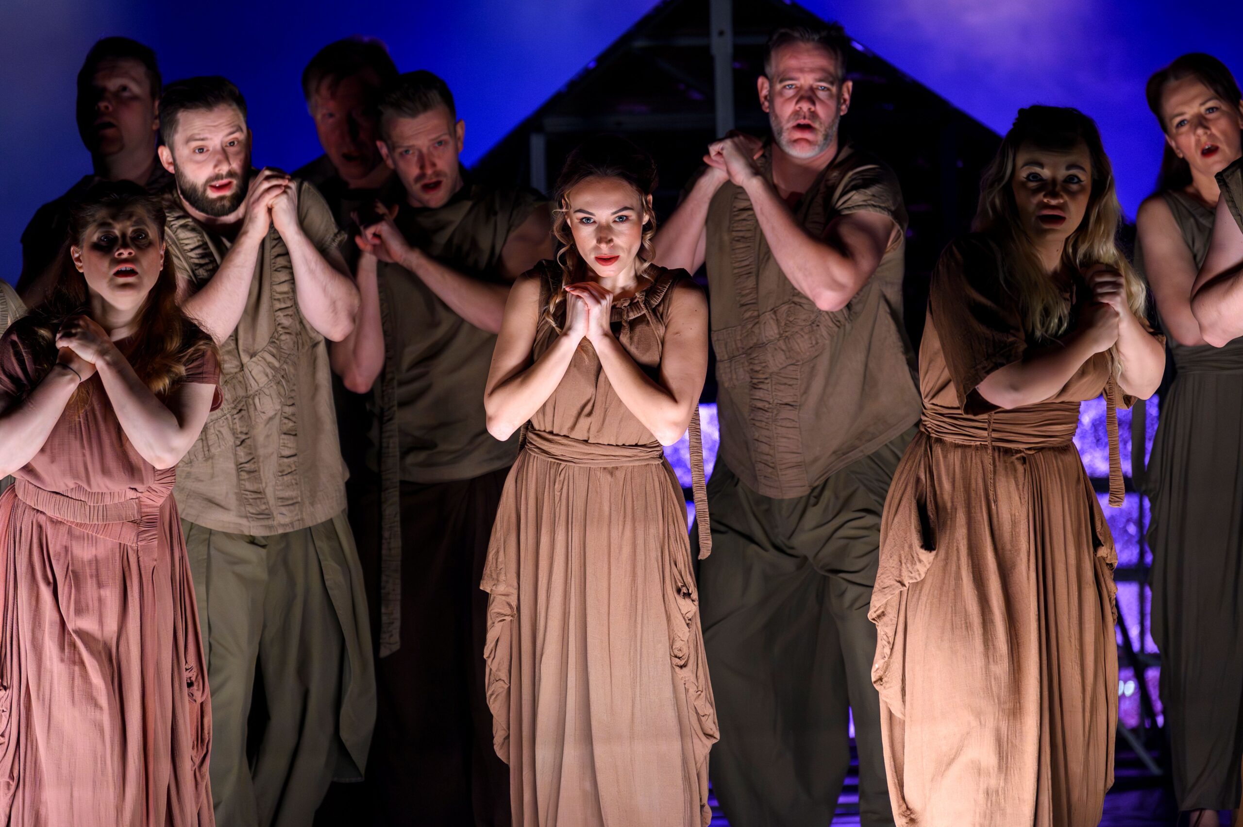 Byli jsme svědky ostravského režijního debutu Vladimíra Johna, který vyzněl velmi jistě. Režisér se rozhodně nepokouší o efektní aktualizace ani o násilné přepisování příběhu; spíše jej nechává rezonovat skrze současné výrazové prostředky, na něž upozorňuje s jemným vtipem – ať už se jedná o pohybové kreace lehce připomínající prvky street dance, drobné detaily v herecké práci či práci s rekvizitami. Samotné scénografické řešení poskytovalo silnou oporu premiérovým hereckým výkonům pěvců – současný jazyk podpořil starověké téma koncentrací do symbolických akcentů.