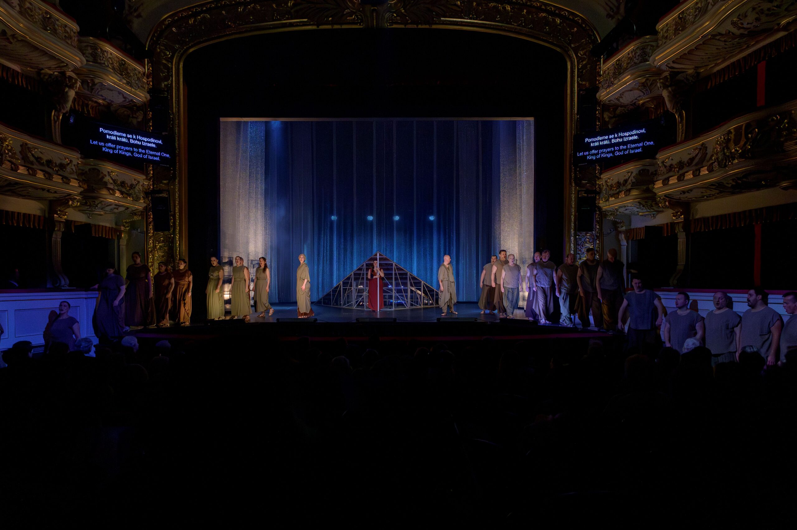 Monumentální, dlouhé, pěvecky extrémně exponované, tematicky velké – a přesto často ve své dobové rétorice těžkopádné. Biblické fresky, které v době svého vzniku hovořily jazykem patosu, dnes někdy působí jako muzeální artefakt. A přece – nebo právě proto – je třeba se ptát: může takové dílo v roce 2026 ještě promluvit k publiku? Může nás zasáhnout příběh o vyvedení z otroctví, o rozestoupení moře, o víře a tvrdohlavosti, o lásce, která stojí proti dějinám? Odpověď nepřichází okamžitě. Přichází postupně – s každou frází, s každým světelným zábleskem, s každým výrazem sólistů a sboru.