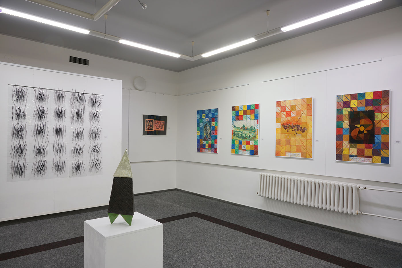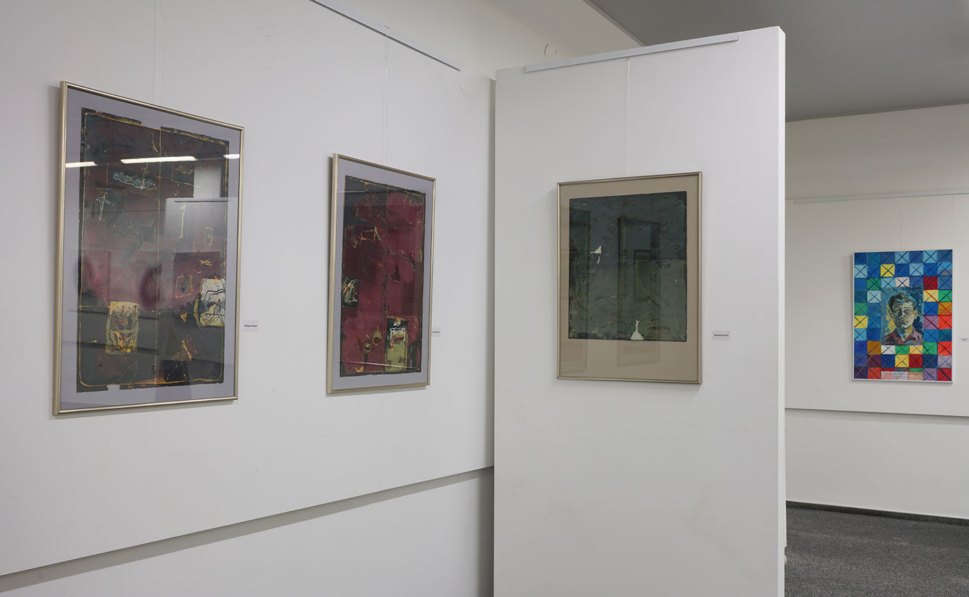Zleva Michaela Terčová (3 práce na papíře), Zdeněk Heiser (obraz). (Foto: D. Andrýsek)