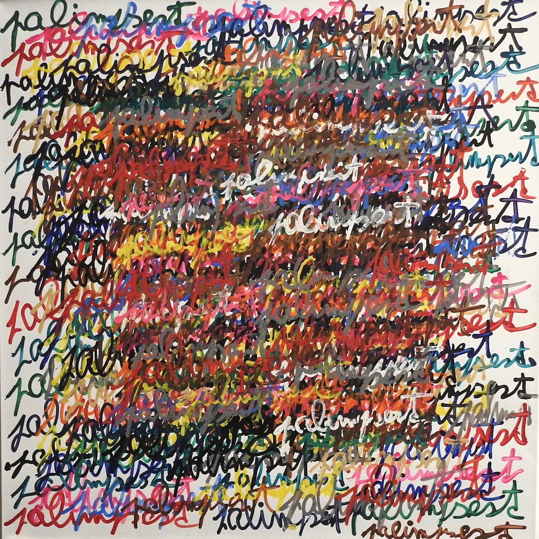 Slovo „circle“, tedy kruh, pak na obraze spirálovitě rotuje (Circle I., 2025) anebo vytváří vnitřní a vnější kruhy vzájemně se překrývající (Circle III., 2025). Další obraz se vlní jako mávání křídel (Wings, 2025). Palimpsest nám říká, že starý, původní text byl na mnoha místech seškrabán, jednou nebo víckrát, až k téměř naprosté nečitelnosti (Palimpsest, 2025).