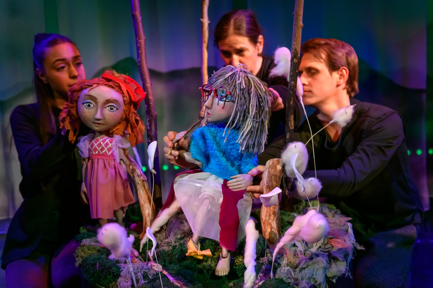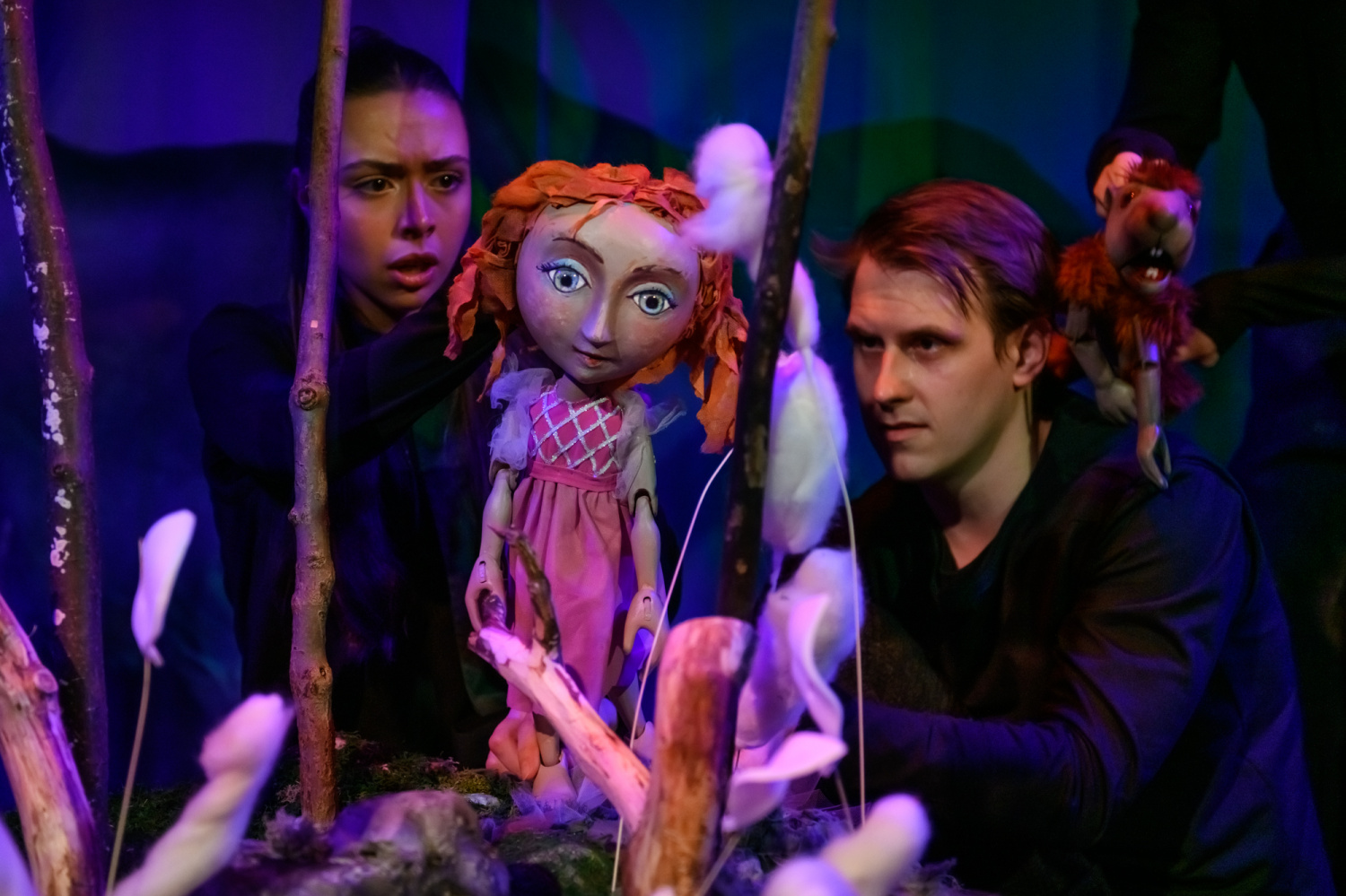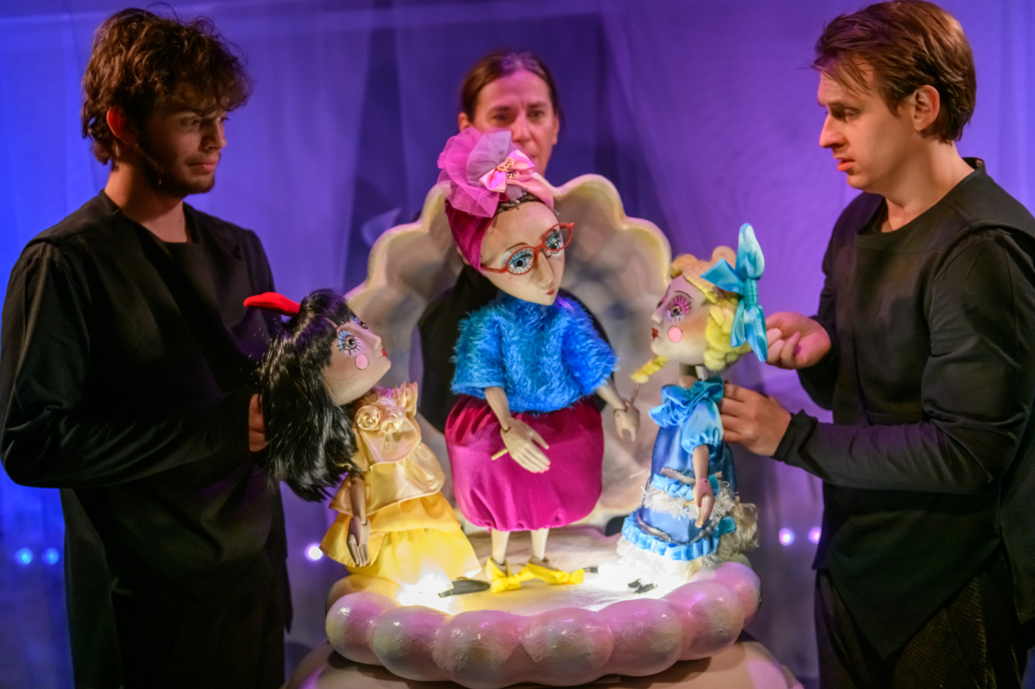 Loutky ožívají za doprovodu vynikajících loutkoherců souboru Bajky. Wanda Michałek dodává slečně Blumové ideální afektovanost i finální nespoutanost, Ewa Kus propůjčuje Divožence působivou energii a přirozenou zemitost. Tomasz Grycz a Tomáš Neuer dodali představení humor a rozvernost. Role Majdy se ujala hostující studentka konzervatoře Maya Babicová. Její sympatický výkon se rovnal práci zkušenějších loutkoherců.