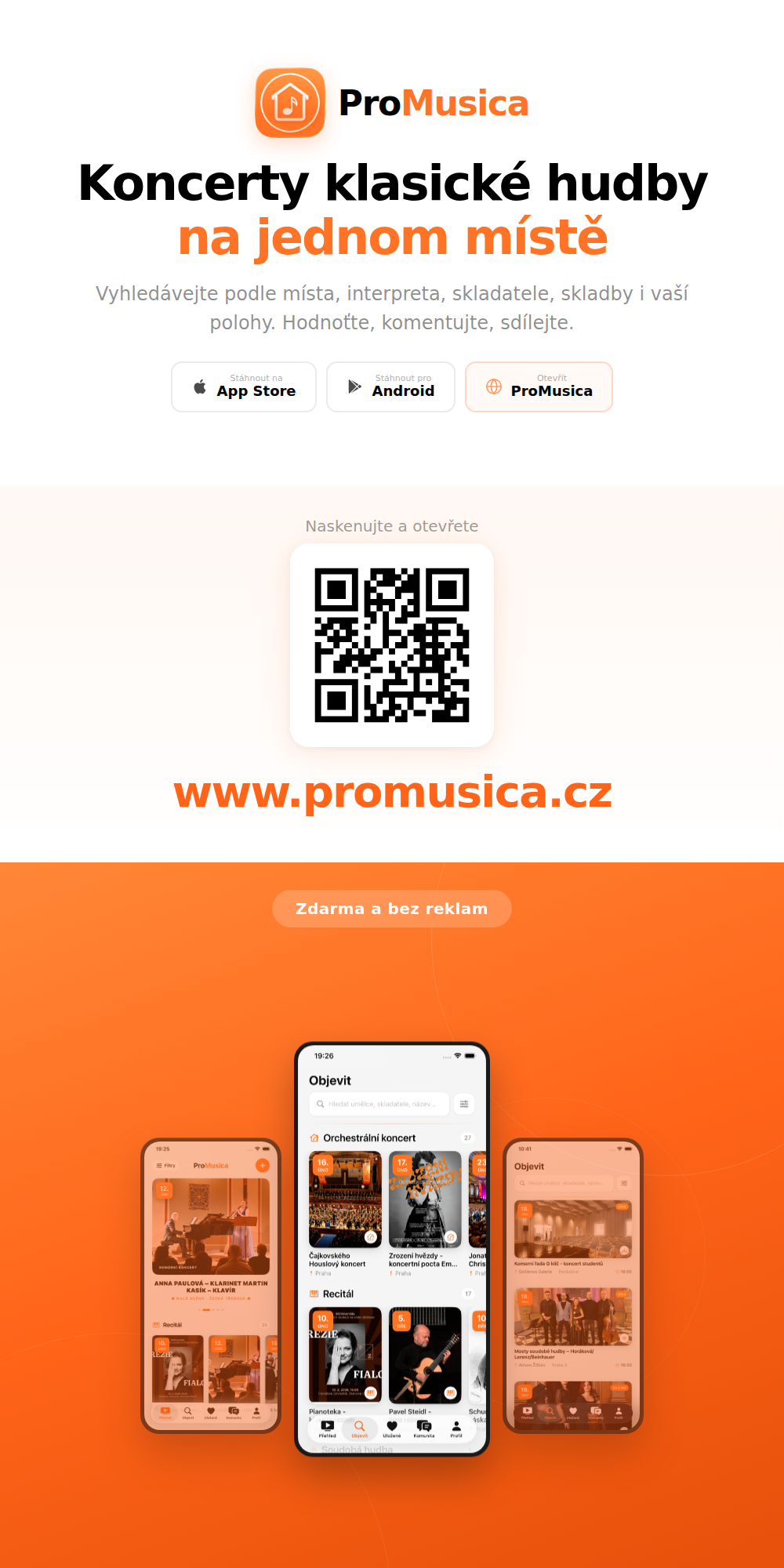 Ale hned vzápětí mě napadlo, že by se dalo jít mnohem dál. Klasická hudba má velmi specifickou, soudržnou komunitu — hudebníky, posluchače i pořadatele — a přitom tito lidé jsou spolu v digitálním prostoru prakticky nepropojení. ProMusica vznikla z touhy tohle změnit: vytvořit místo, kde je pohromadě úplně všechno a kde má tato komunita konečně svůj společný svět.